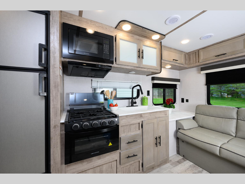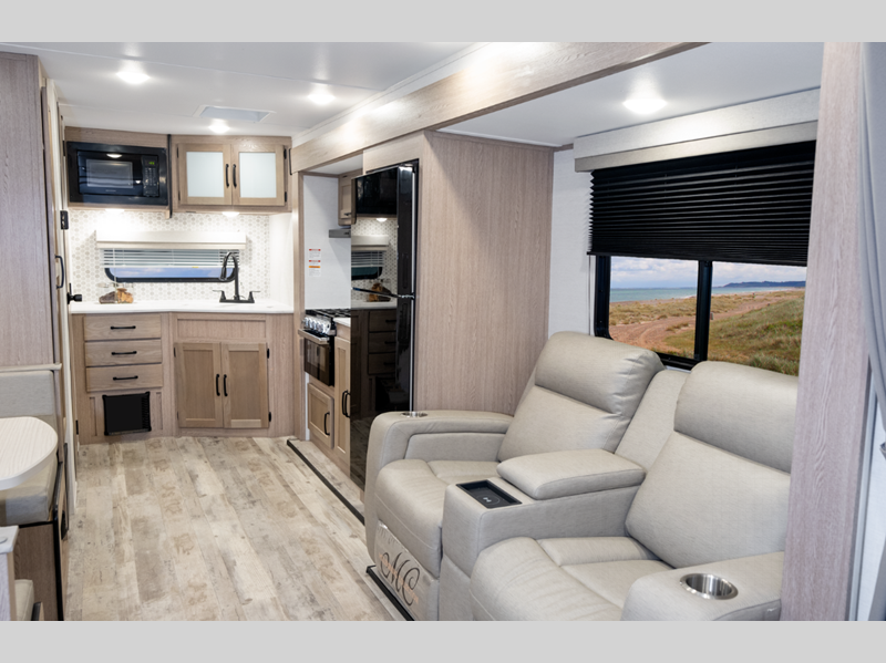 Sleeps 5 Slides 1 Length 28 ft 10 in Ext Width 8 ft Ext Height 11 ft 1 in Int Height 6 ft 8 in Hitch Weight 580 lbs Dry Weight 5050 lbs Cargo Capacity 4330 lbs Fresh Water Capacity 35 gals Grey Water Capacity 33 gals Black Water Capacity 33 gals Tire Size 14" Furnace BTU 20000 btu Available Beds Queen Number of Awnings 1 LP Tank Capacity 20 lbs Water Heater Type Tankless AC BTU 13500 btu Awning Info Electric with LED Lights Axle Count 2 Number of LP Tanks 2 Shower Type Radius Electrical Service 30 amp Similar Floorplans