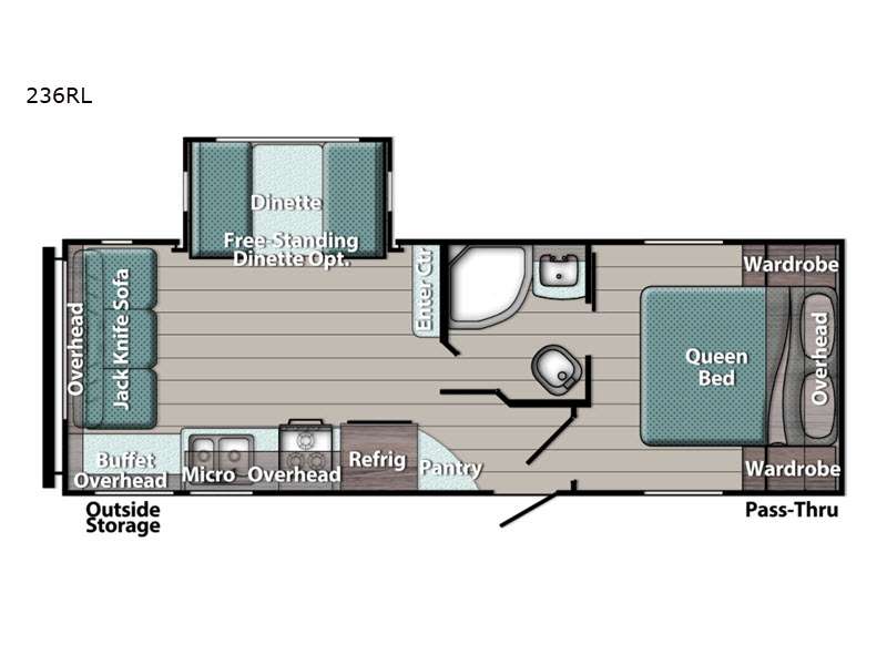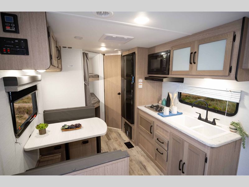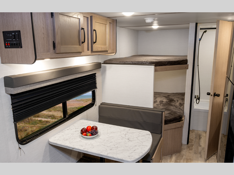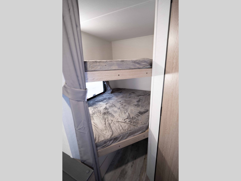 Sleeps 5 Slides 1 Length 23 ft 4 in Ext Width 8 ft Ext Height 10 ft 6 in Int Height 6 ft 8 in Hitch Weight 530 lbs Dry Weight 4430 lbs Cargo Capacity 1300 lbs Fresh Water Capacity 35 gals Grey Water Capacity 34 gals Black Water Capacity 34 gals Tire Size 14" Furnace BTU 20000 btu Number Of Bunks 2 Available Beds Queen Number of Awnings 1 LP Tank Capacity 20 lbs Water Heater Type Tankless AC BTU 13500 btu Awning Info Electric with LED Lights Axle Count 2 Number of LP Tanks 1 Shower Type Tub/Shower Combo Electrical Service 30 amp Similar Floorplans