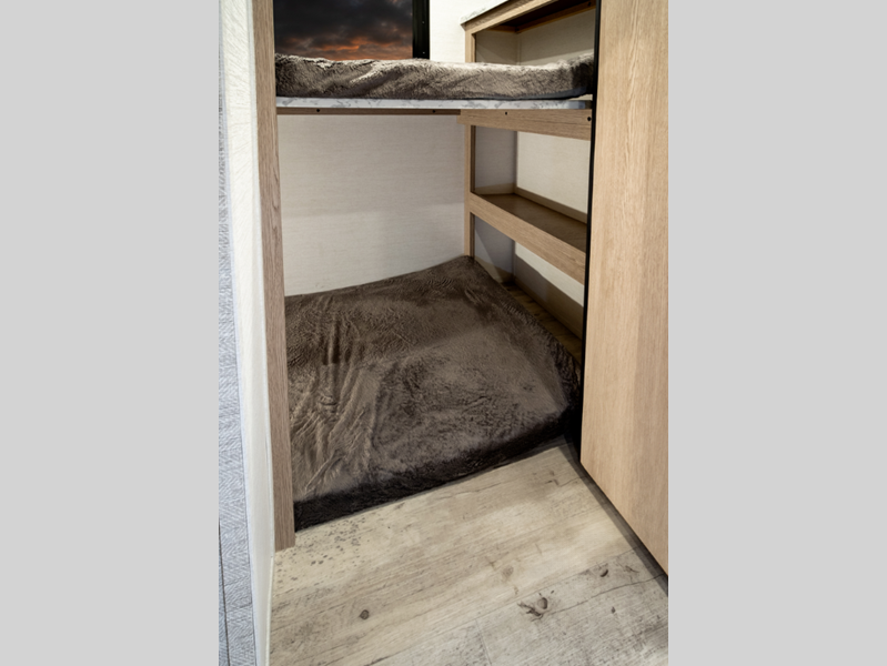 Sleeps 8 Slides 1 Tire Size 14" Number Of Bunks 2 Available Beds Queen Number of Awnings 1 LP Tank Capacity 20 lbs Water Heater Type Tankless AC BTU 13500 btu Awning Info Electric with LED Lights Axle Count 2 Number of LP Tanks 2 Shower Type Standard Electrical Service 30 amp Similar Floorplans
